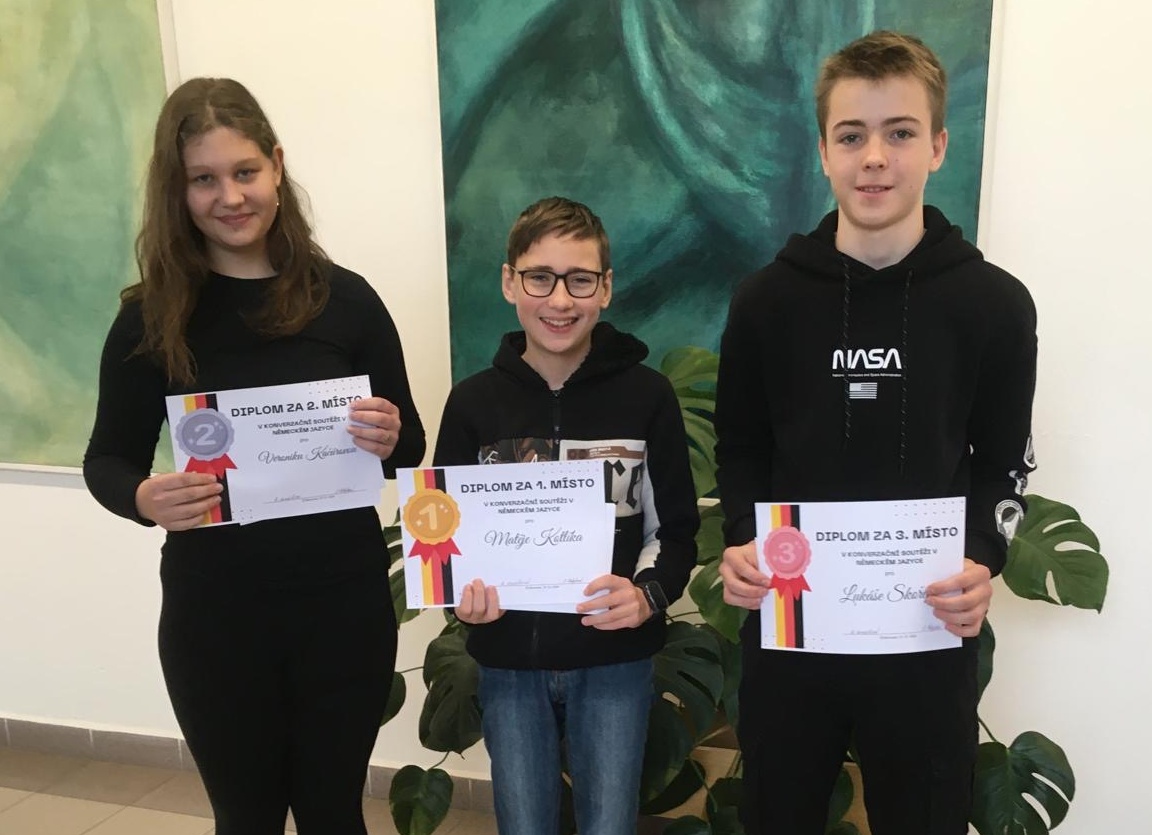 Soutěž se skládala z písemné a ústní části. Nejprve si němčináři museli poradit s rozborem textu a odpovědět na otázky, které se k němu vztahovaly. Následoval gramatický test a na závěr žáky čekala konverzace na různá témata. Nejlépe si v soutěži vedl Matěj Kotlík z 9.B, který obsadil 1. místo s plným počtem bodů. Na 2. místě se umístila Veronika Kačúrová z 8.B a 3. místo obsadil Lukáš Skořepa také z 8.B. Vítěz Matěj Kotlík postupuje do okresního kola, které se bude konat 25.2. 2025 v DDM v Českých Budějovicích.